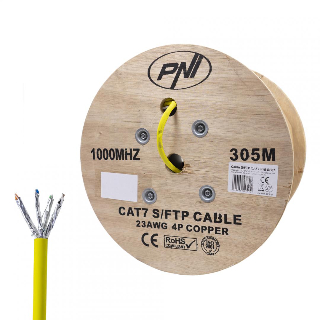 PNI-SFTP07M – Cablu S/FTP CAT7 PNI SF07 la metru 10Gbps, 1000MHz, pentru internet si sisteme de supraveghere, cupru.