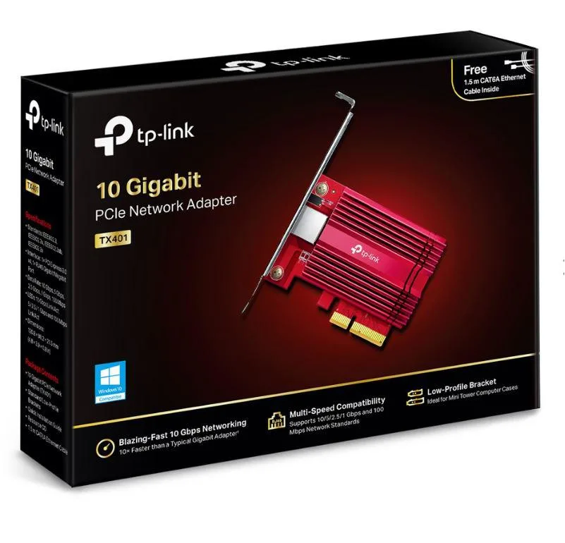 TP-LINK TX401 este un adaptor de rețea 10 Gbps PCIe dedicat utilizatorilor care doresc conectivitate rapidă și stabilă pentru PC, fie în mediul de birou, fie acasă. Conceput pentru integrare internă, acest adaptor optimizează performanța rețelei prin suport pentru multiple standarde IEEE și viteze variate, oferind flexibilitate în configurarea infrastructurii Ethernet.