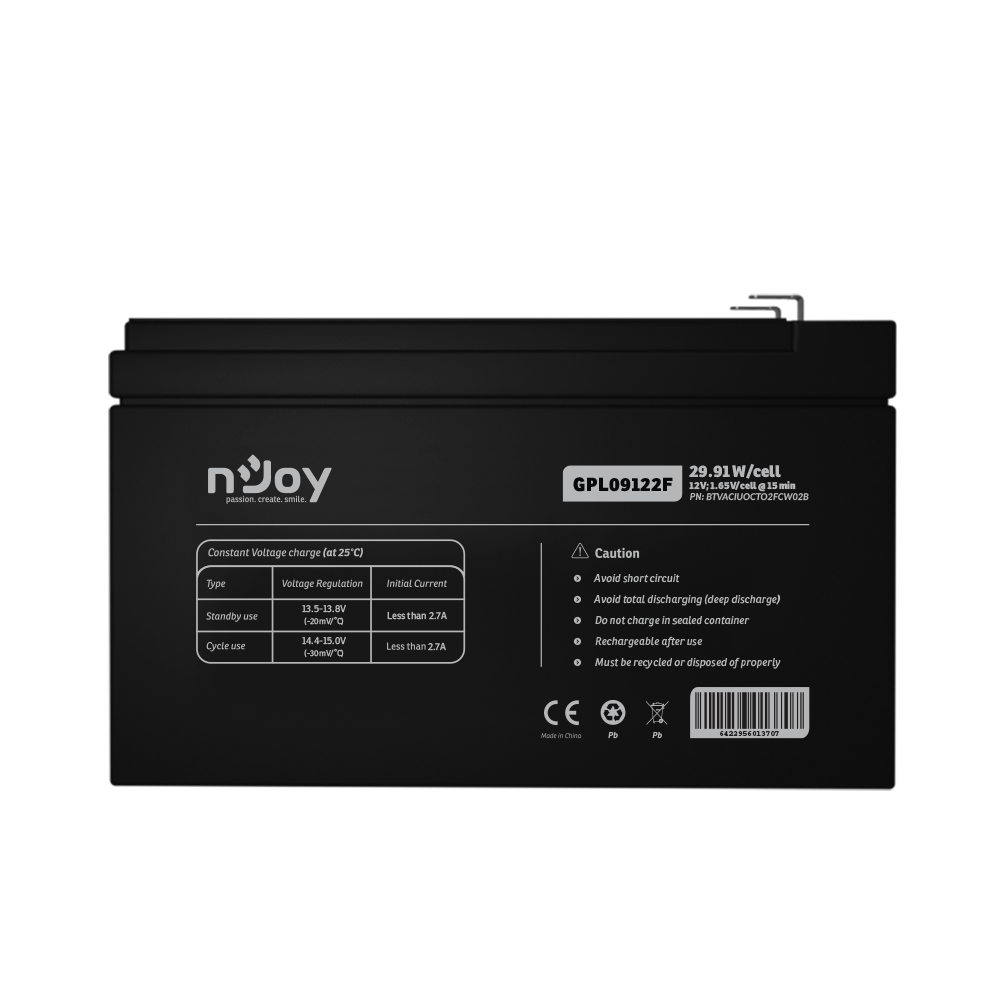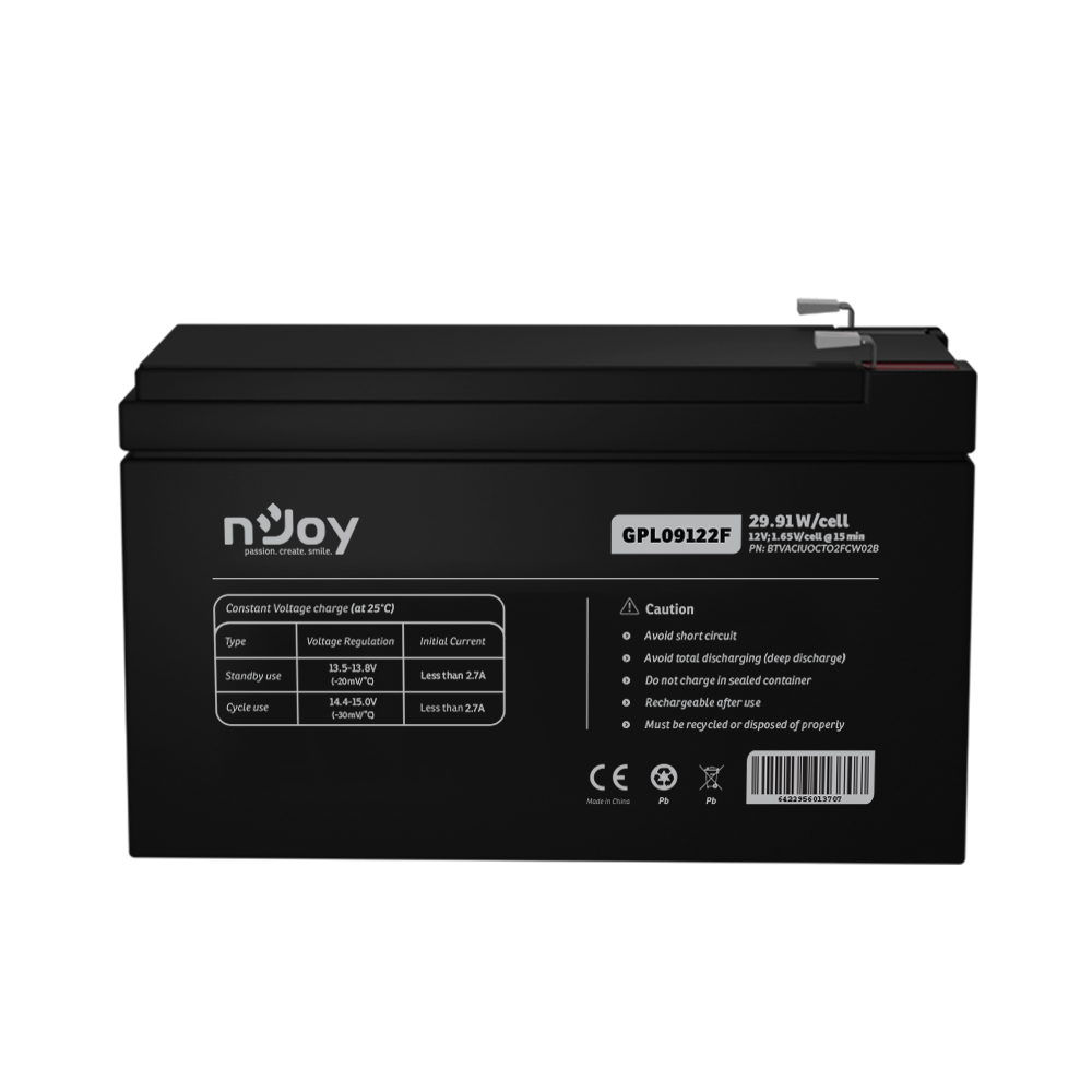 Specificație: Acumulator nJoy GPL09122F 12V 30.55W/cell, Capacitate 30.55W/cell evaluat la 1,65V/cell@15
