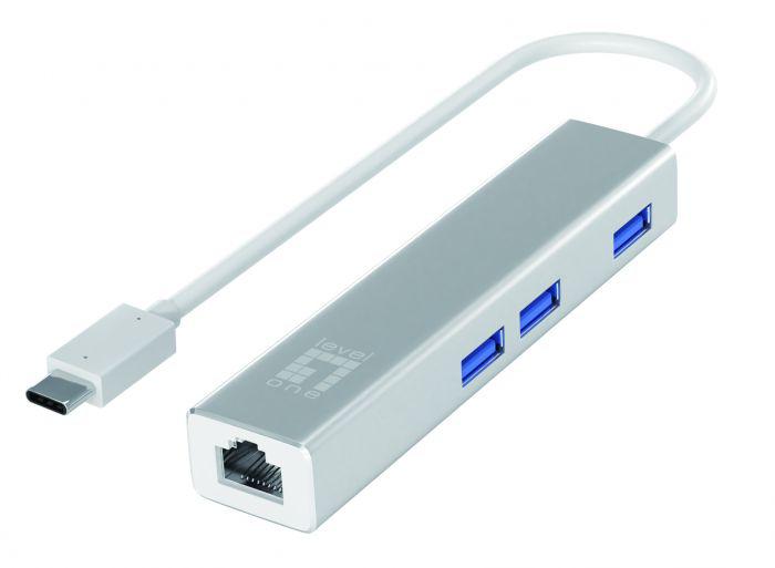 LevelOne USB-0504 Gigabit USB-C Network Adapter with USB Hub, 110