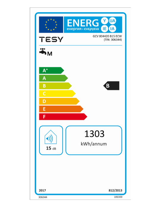 Boiler electric Tesy BiLight Cloud, 80L, Wi-Fi, control din aplicatie, Clasa energetica B, 2000W, 855×440 mm, alb