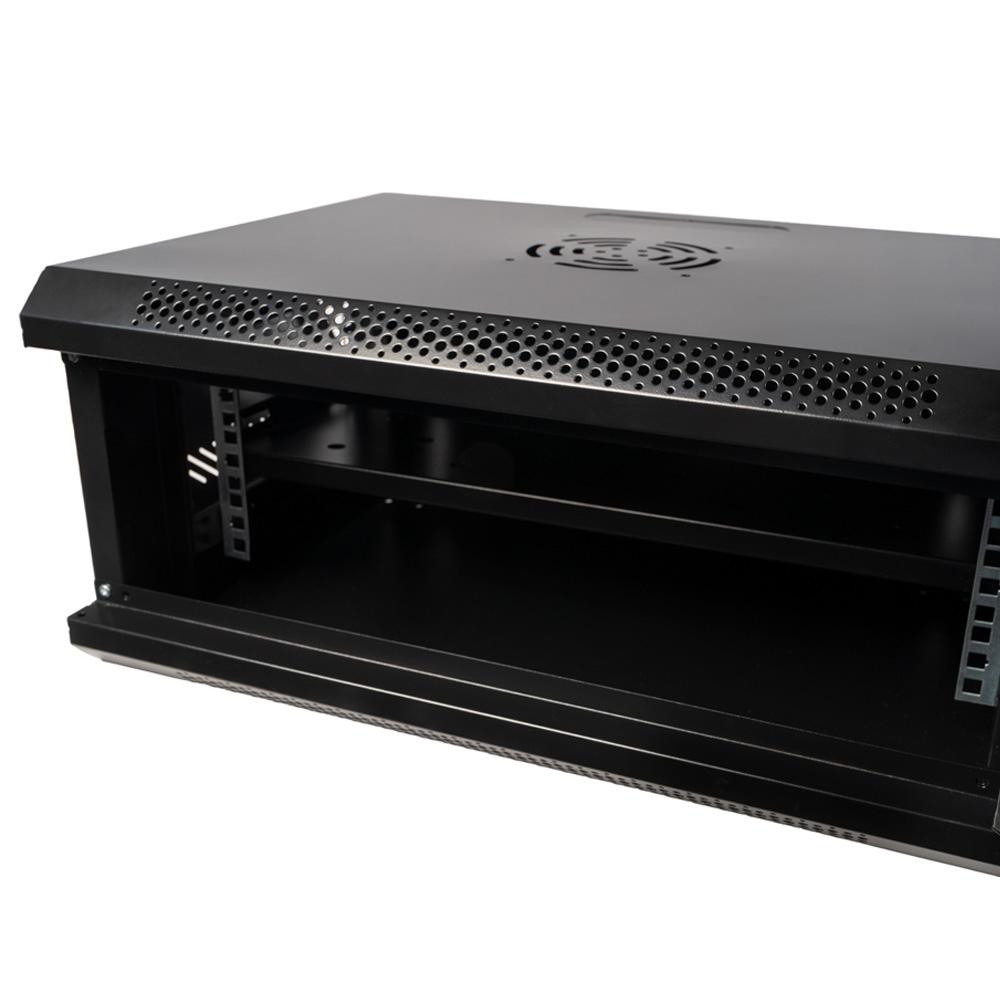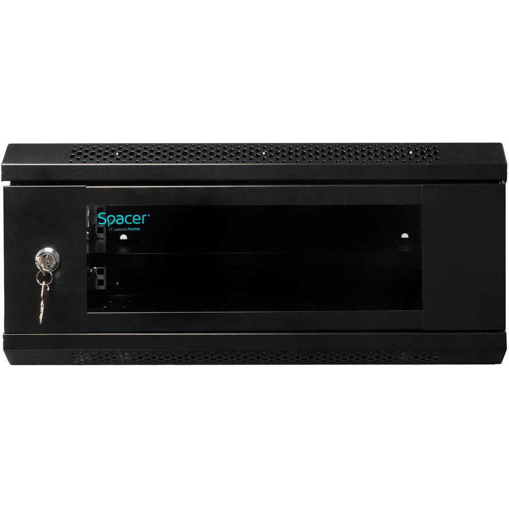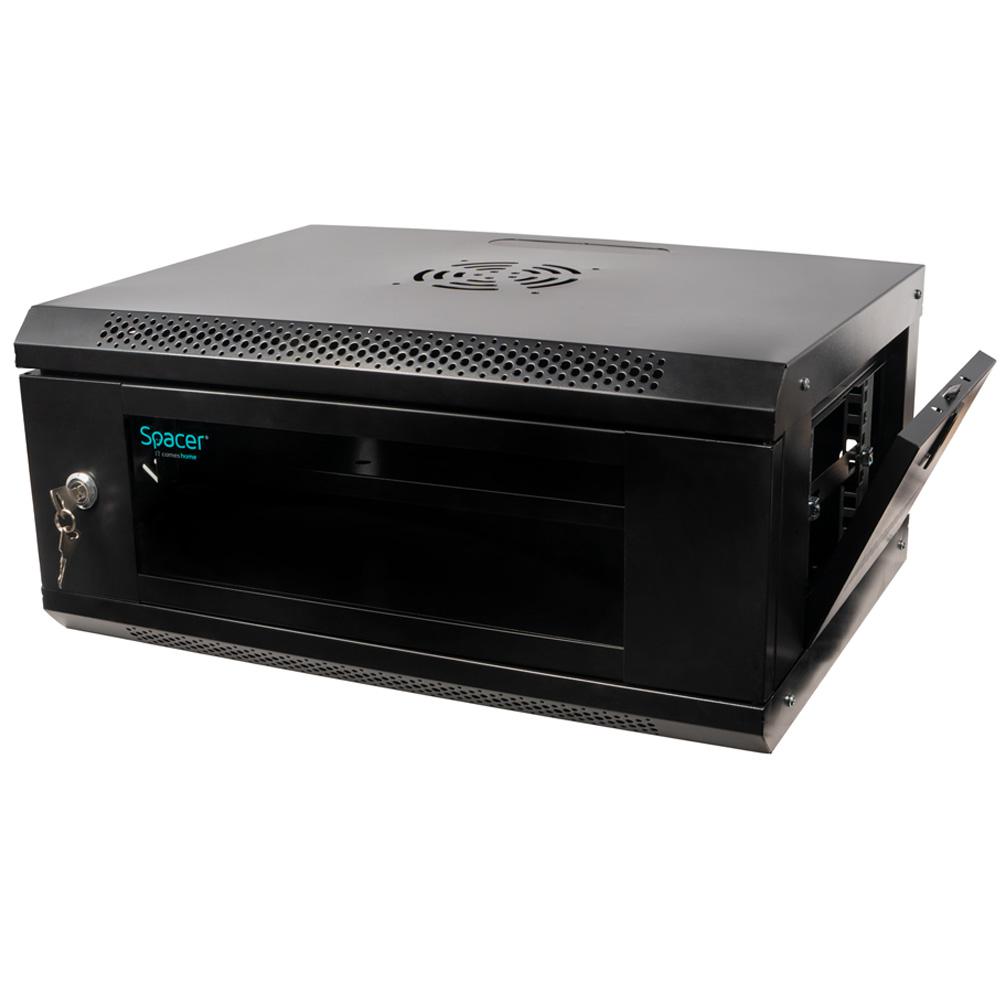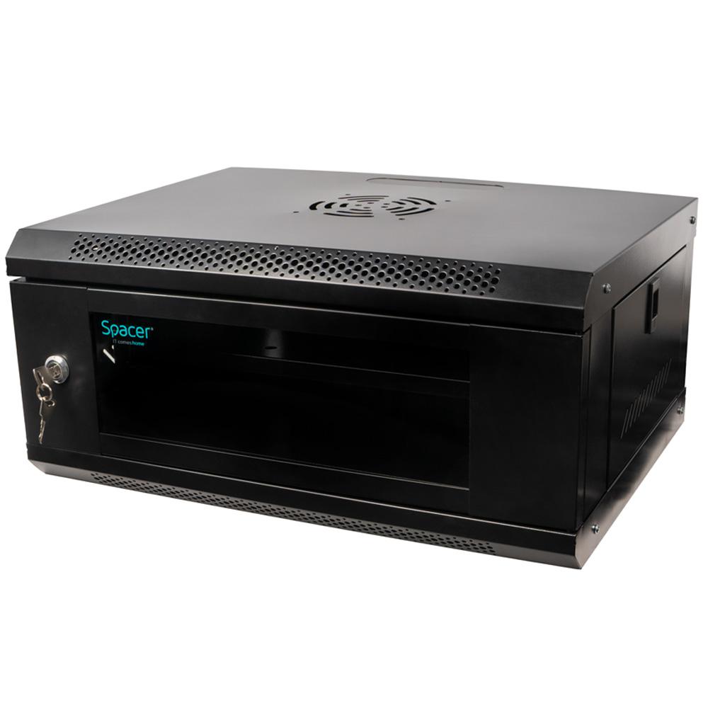 CABINET 19″ SPACER 4U 500x450mm, fixare pe perete, Flatpack (dezasamblat), Black, usa sticla cu blocare, panouri detasabile, otel 1mm, sarcina maxima 25Kg