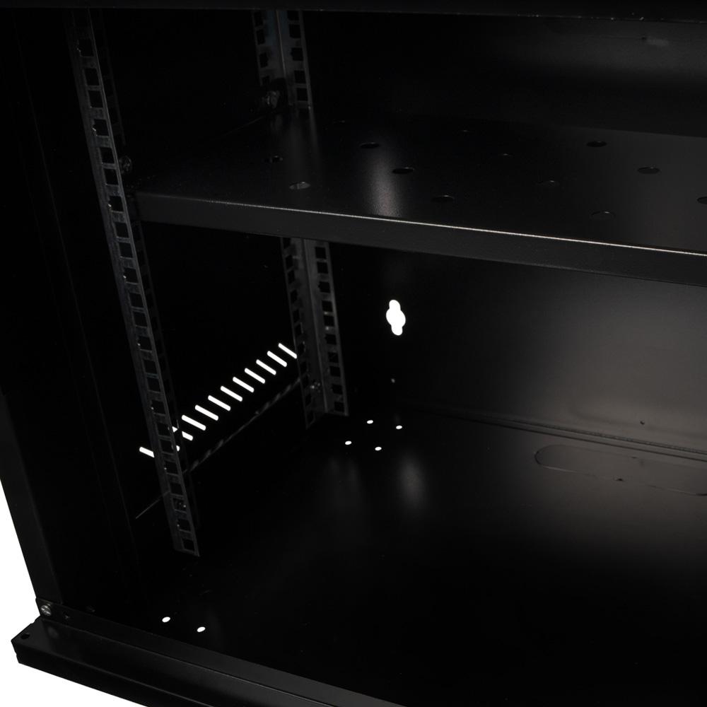 CABINET 19″ SPACER 9U 500x450mm, fixare pe perete, Flatpack (dezasamblat), Black, usa sticla cu blocare, panouri detasabile, otel 1mm, sarcina maxima 25Kg