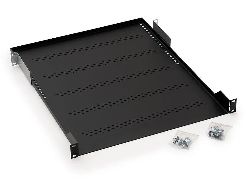 Cu o capacitate de incarcare de pana la 40 kg si format 1U, raftul optimizeaza spatiul disponibil in rack, permitand montarea stabila a echipamentelor care nu sunt prevazute cu prindere frontala. Designul perforat contribuie la o ventilatie adecvata, iar latimea de 350 mm il face potrivit pentru configuratii standard de 19 inch. Finisajul negru se integreaza usor in majoritatea cabinetelor metalice pentru servere.