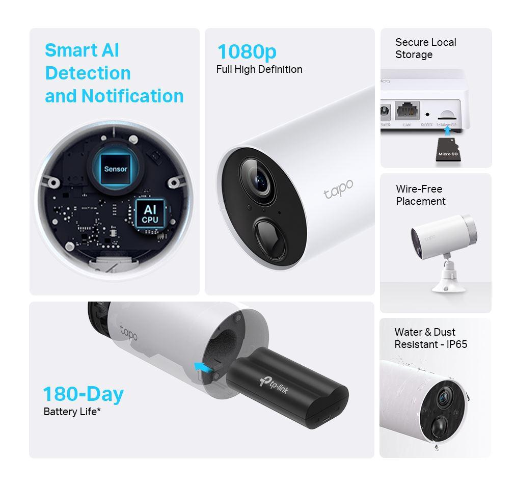 Kit camere Supraveghere WIFI, wireless TAPO C400S2, 2.4 GHz, WPA/WPA2- PSK, Detectează mișcarea,persoane, animale si autovehicule, Compresie video H.264, Frame Rate 15fps, Video Streaming 1080p, (110.6×64.2×64.2mm), Senzor Imagine 1/3″ Night Vision 850 nm IR LED up to 49 ft (15m).