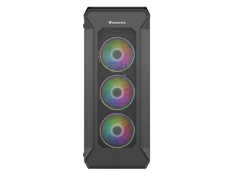 Carcasa GENESIS IRID 505 V2 Mid Tower ARGB NEGRU – Drive Bays: 2×3.5 inch 7×2.5 inch – Tempered Glass – Sloturi