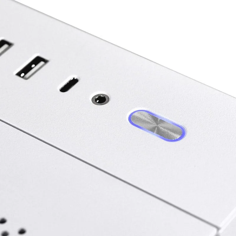 Formatul Mini Tower, incadrat in categoria Mid Tower, permite integrarea componentelor esentiale intr-un spatiu optimizat. Panourile din tempered glass evidentiaza configuratia interna, iar cele 5 si 7 sloturi PCI ofera optiuni clare pentru placi de extensie. Conectivitatea frontala include port USB 3.2 Gen 1 Type-A si porturi audio dedicate, pentru acces rapid si organizare eficienta. Butonul On/Off integrat completeaza experienta de utilizare practica.