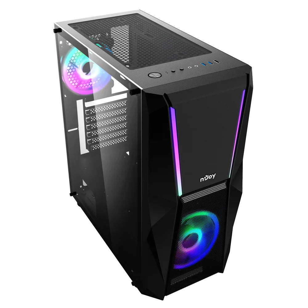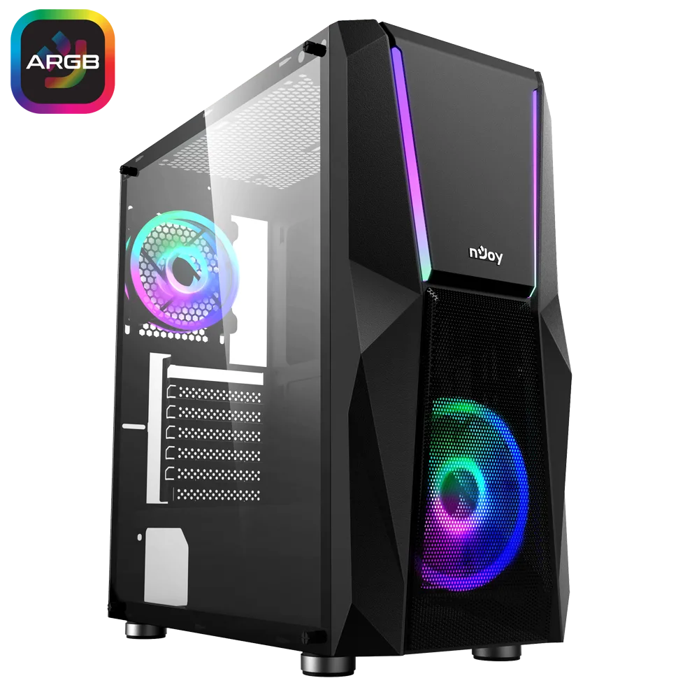 Carcasa nJoy Fort Mid Tower NEGRU este alegerea potrivita pentru pasionatii de gaming si tehnologie care isi doresc un sistem echilibrat intre performanta, organizare si design modern. Compatibila cu placi de baza ATX, M-ATX si E-ATX, aceasta carcasa ofera flexibilitate in configurare si un aspect personalizat datorita iluminarii ARGB integrate.