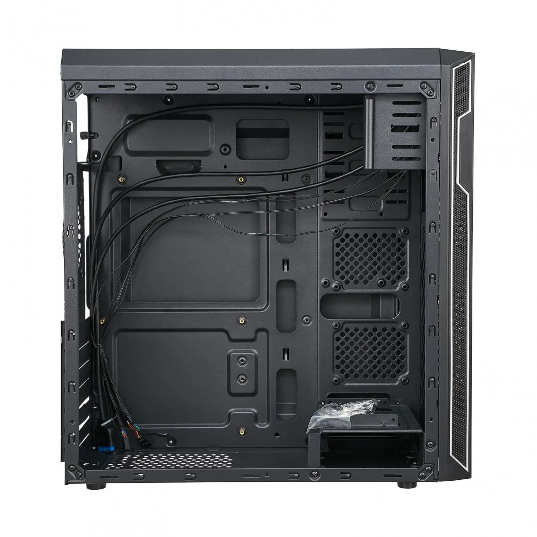Formatul Mid Tower permite integrarea componentelor esentiale, iar compatibilitatea cu surse ATX iti ofera flexibilitate in alegerea alimentarii (fara sursa inclusa). Porturile frontale USB 3.0 si USB 2.0 asigura conectare rapida pentru periferice, iar suportul pentru ventilatoare contribuie la o ventilatie eficienta a sistemului. Cu suport pentru placa video de pana la 340 mm si cooler CPU de pana la 145 mm, carcasa raspunde cerintelor unei configuratii echilibrate.