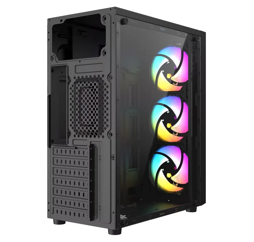 Formatul Mid Tower compatibil ATX permite integrarea componentelor esentiale fara compromisuri, iar panoul lateral din tempered glass pune in valoare iluminarea interna. Cele 3 ventilatoare ARGB incluse asigura un flux de aer eficient si un plus de stil, cu posibilitatea de a monta pana la 6 ventilatoare pentru racire extinsa. Porturile USB frontale faciliteaza conectarea rapida a perifericelor, iar lipsa sursei incluse iti ofera libertatea de a alege alimentarea potrivita configuratiei tale.