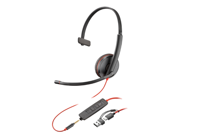 Poly Blackwire 3215 Monaural USB-C Headset +3.5mm Plug +USB-C/A Adapter