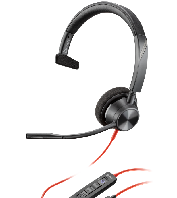 Poly Blackwire 3310 Monaural Microsoft Teams Certified USB-C Headset +USB-C/A