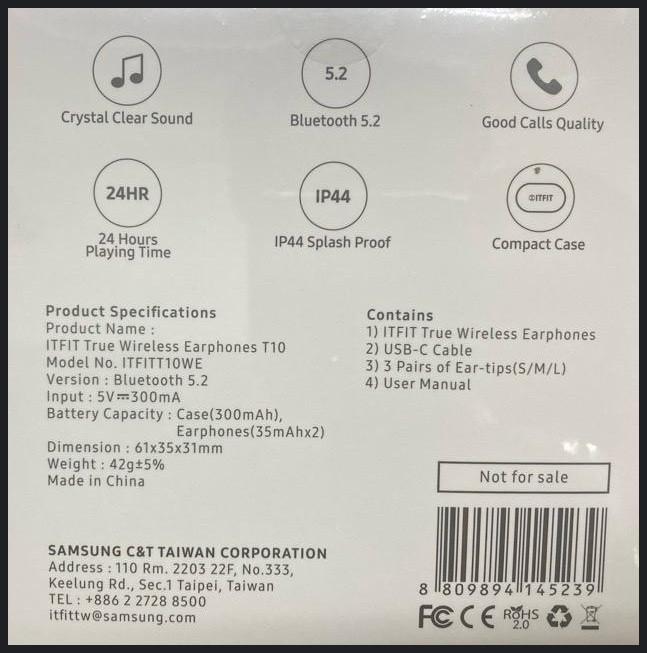 Samsung ITFIT True Wireless In-Ear Buds T10 White (BT5.2, IP44,