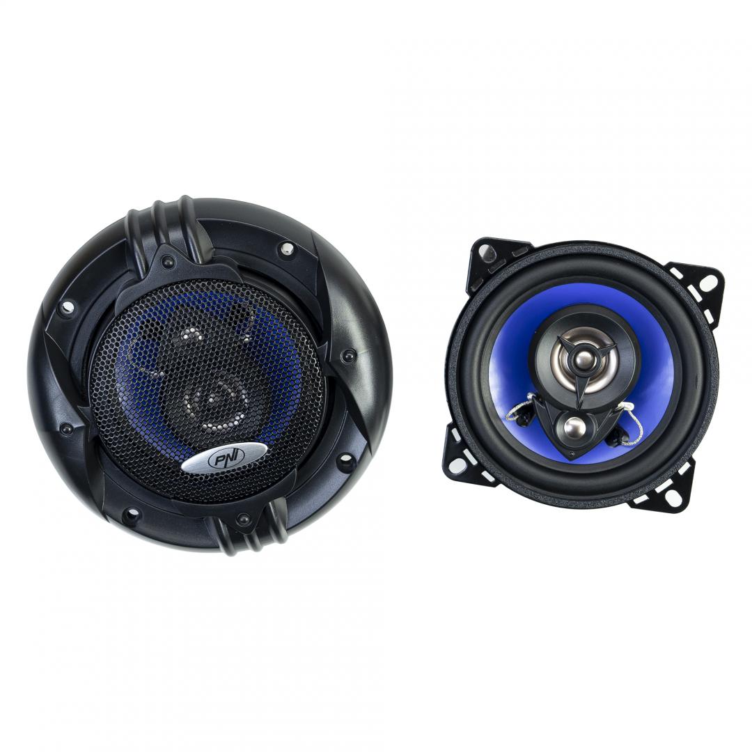 Difuzoare auto coaxiale PNI HIFI400, 80W, 4 Ohm, 10 cm, 3 cai, Injection Core cu diametru 100mm, set 2 buc, Raspuns in frecventa: 100 – 20000 Hz, 3 cai, Sensibilitate: 88 dB, 15 mm Piezo Tweeter, 30 mm Mylar Dome Tweeter, Grile protectie, Cablaj montaj.