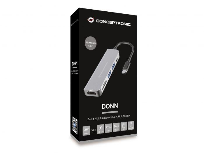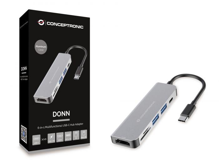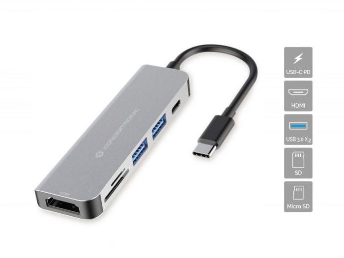 CONCEPTRONIC DONN02G 6-in-1 USB 3.2 Gen 1 Docking Station, USB 3.0 x 2, 60W USB PD, HDTV, SD, TF/MicroSD, 35.8 x 120 x 15 mm