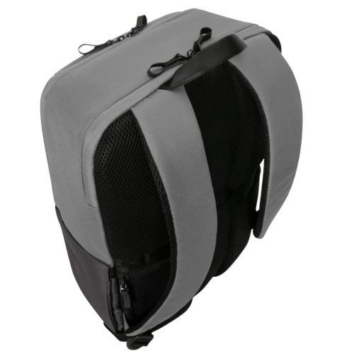 Rucsac laptop Targus 16″ Sagano EcoSmart, pentru laptopuri de 16″ sau mai mici, capacitate 22 de litri, material RPET 500, dimensiun: 33 x 19 x 53 cm, greutate 0.77 kg, negru/gri