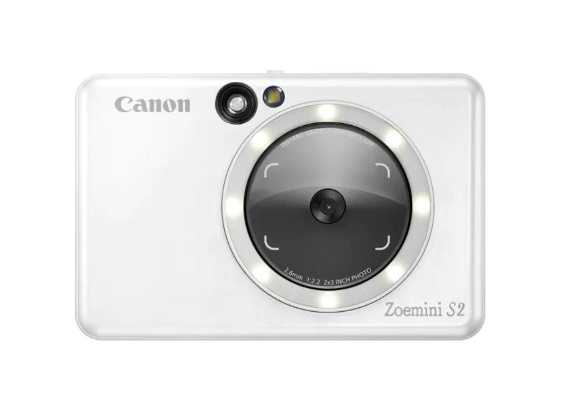Imprimanta foto Canon Zoemini S2, 2 in 1 camera foto + imprimanta foto, tehnologie ZINK (zero ink) Viteza: 50 secunde pe poza, Rezolutie printare 314 X 600 dpi, Camera 8 megapixeli, blitz integrat, Bluetooth, NFC, compatibilitate IOS si Android, format poze: JPG, slot microSD (max256gb), baterie 700mAh, durata baterie: 25 tipariri, dimensiuni: 121 x 80.3 x 22.4 mm, culoare: Pearl White, greutate: 188g, capacitate 10 coli 5.08 x 7.62 cm.