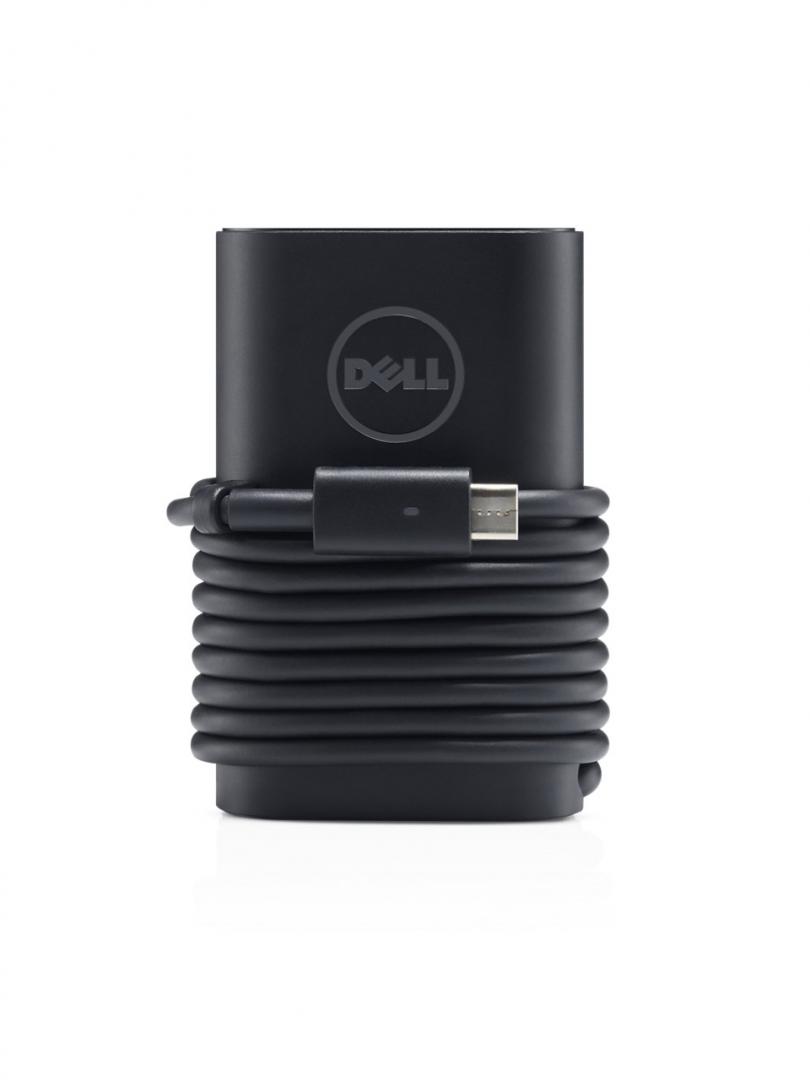Dell 65W USB-C AC Adapter-EUR, 1 meter power cord, Incorporates a rubber strap for easy cable management and a LED light ring on the DC connector