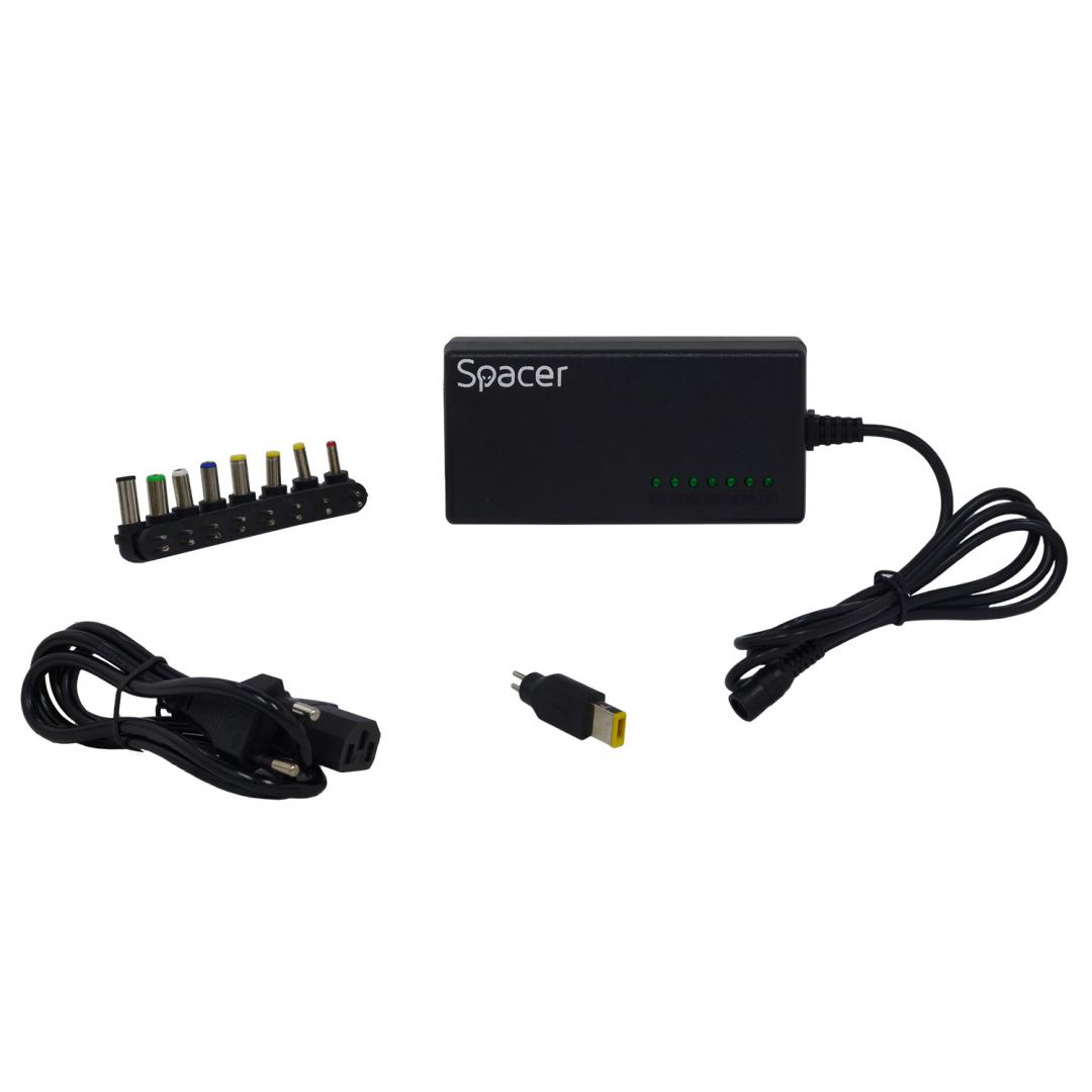 Incarcator laptop universal Spacer 96W, 9 tipuri de mufe, voltaj