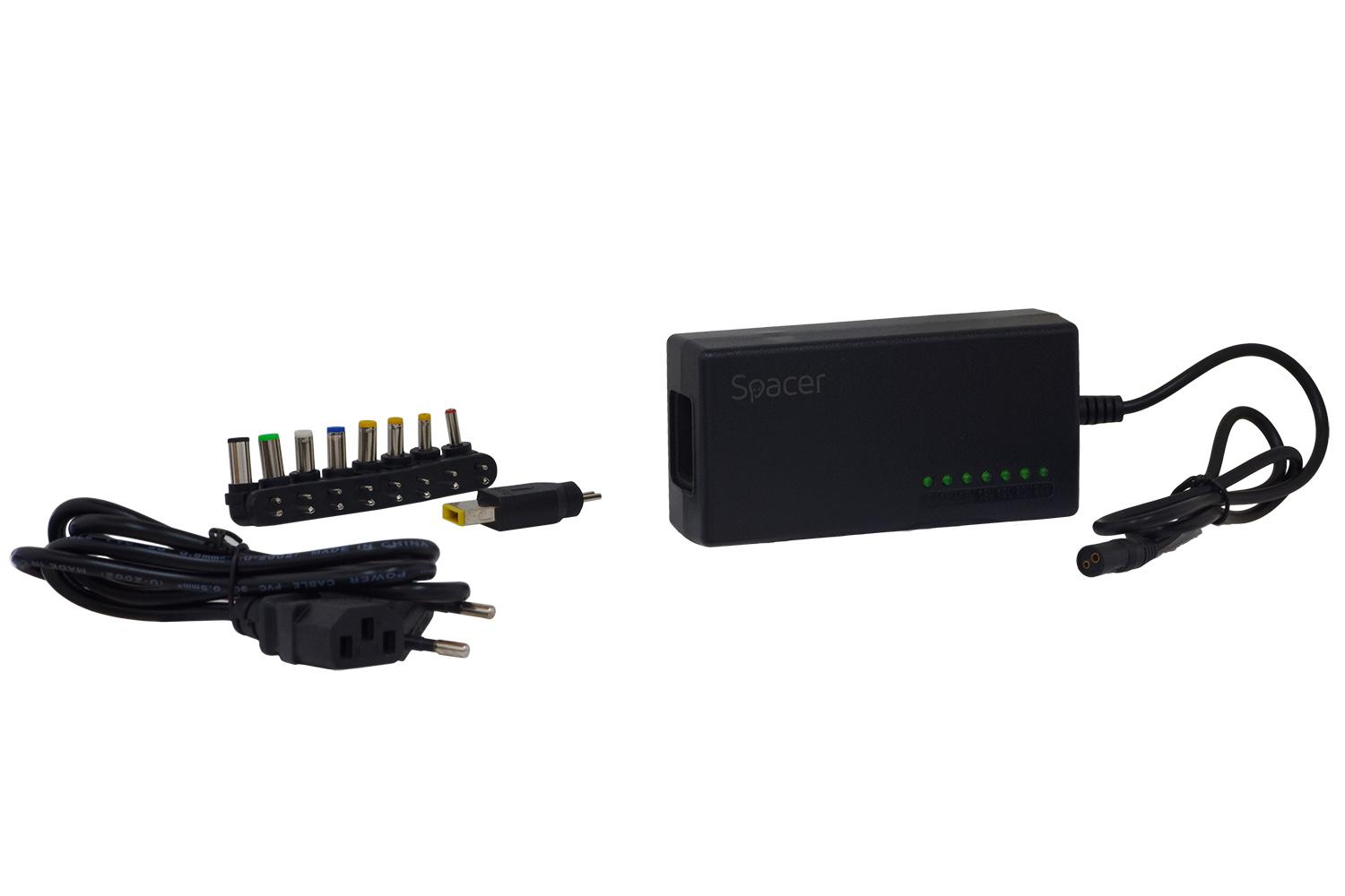 Incarcator laptop universal Spacer 96W, 9 tipuri de mufe, voltaj iesire 12 / 15 / 16 / 18 / / 19 volt