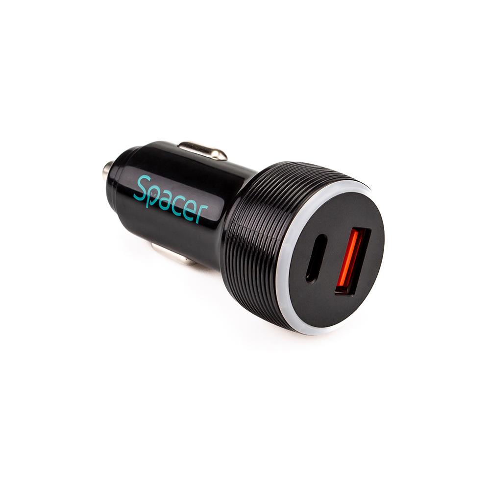 Alimentator auto Spacer Quick Charge 17W 3.1A max, putere totala 17W, LED ambiental, 1 x USB + 1 x USB Type-C, pt. bricheta auto, negru