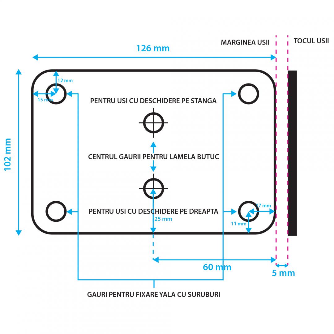 Specificație: PNI Yala electromagnetica H1073A din otel, cu butuc Fail Secure