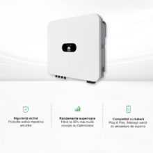 - Conversie eficientă a energiei produsă de panouri fotovoltaice în curent utilizabil, cu randamente ridicate.
