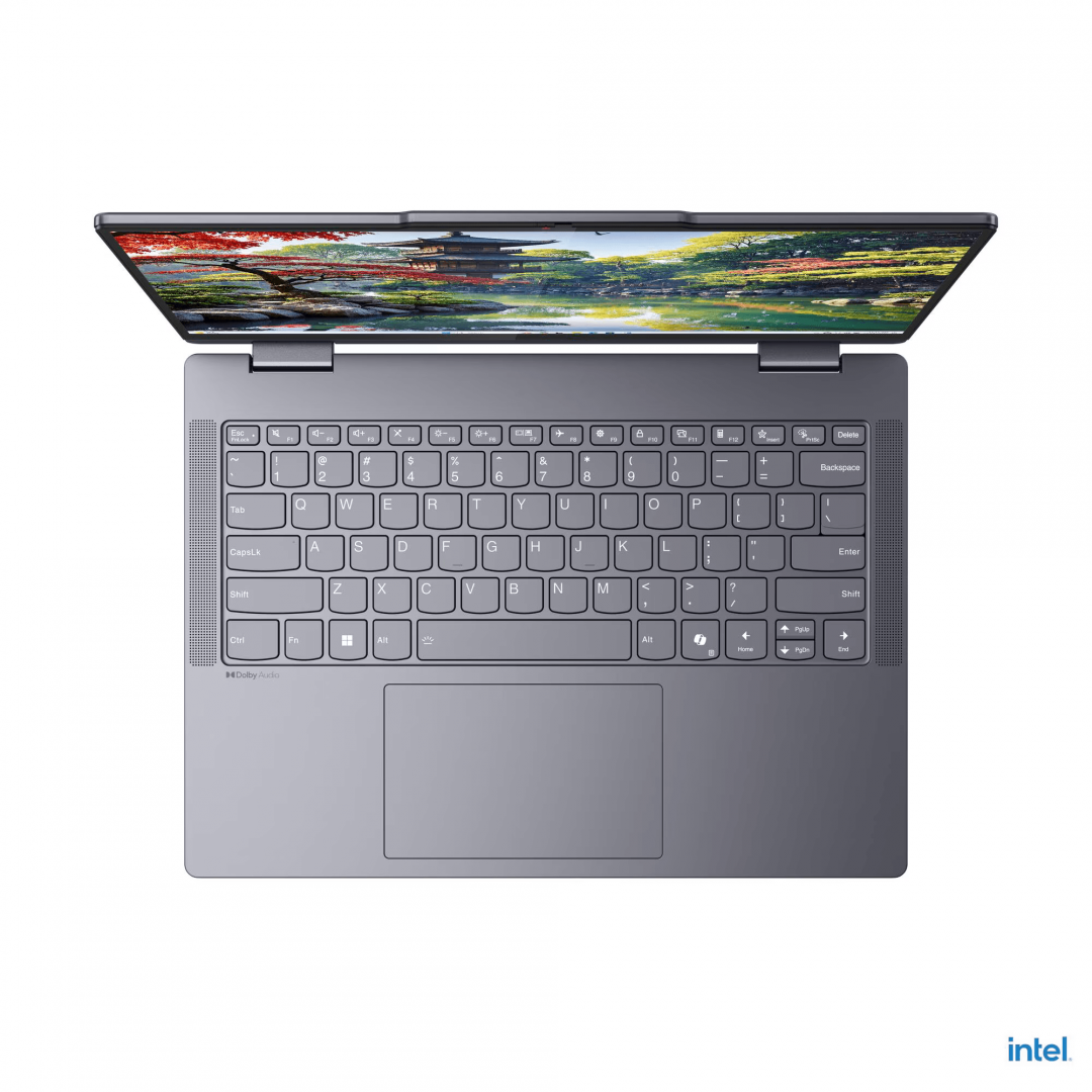 Laptop Lenovo IdeaPad 5 2-in-1 14IAL10, 14″ WUXGA (1920×1200) OLED 500nits (peak) / 400nits (typical) Glossy, 100% DCI-P3, 60Hz, TÜV Low Blue Light, DisplayHDR™ True Black 500, Glass, Touch, Intel® Core Ultra 7 255H, 16C (6P + 8E + 2LPE) / 16T, Max Turbo up to 5.1GHz, 24MB, video Integrated Intel® Arc™ 140T GPU, RAM 1x 24GB Soldered LPDDR5x-8000; Memory soldered to systemboard, no slots, dual-channel (16GB or 24GB models); 24GB soldered memory, not upgradable, SSD 1TB SSD M.2 2242 PCIe® 4.0×4 NVMe®, no ODD, microSD Card Reader, Stereo speakers, 2W x2, optimized with Dolby Audio™, FHD 1080p + IR with Privacy Shutter, No Onboard Ethernet, WLAN Wi-Fi® 7, 802.11be 2×2, Bluetooth 5.4, Non-WWAN, No Fingerprint Reader, Porturi: 1x USB-A (USB 5Gbps / USB 3.2 Gen 1); 1x USB-A (USB 5Gbps / USB 3.2 Gen 1), Always On; 2x USB-C® (USB 10Gbps / USB 3.2 Gen 2), with USB PD 3.0 and DisplayPort™ 1.4; 1x HDMI® 1.4b; 1x Headphone / microphone combo jack (3.5mm); 1x microSD card reader, 65W USB-C® (3-pin), Baterie Integrated 57Wh, Backlit, English, Luna Grey, Greutate 1.5 kg, Dimensiuni 313 x 227 x 17.5 mm, 2-year, Courier or Carry-in, Accesorii None, Free DOS