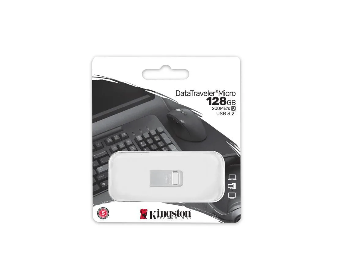 Specificație: Memorie USB Flash Drive Kingston 128GB Data Traveler Micro – USB 3.2 Gen1 – Metalic