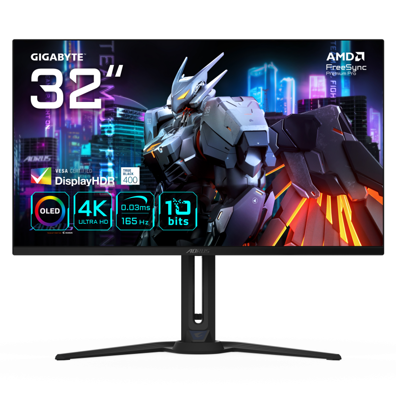 Gigabyte AORUS FO32U gaming monitor diagonala 31.5″, 699.48 x 394.73 mm, OLED, Anti-Reflection, Rezolutie: 3840 x 2160 (UHD), Luminozitate: 250 cd/m2, Contrast: 1.5M:1, Unghi vizualizare: 178°(H)/178°(V), Timp raspuns: 0.03ms GTG, Refresh rate: 165Hz, Flicker-free, Interfata: 2 x HDMI, 1 x Displayport, 1 x USB-C, 2 x USB 3.2 Downstream, 1 x USB 3.0 Upstream, 1 x jack casti, 1 x jack microfon.