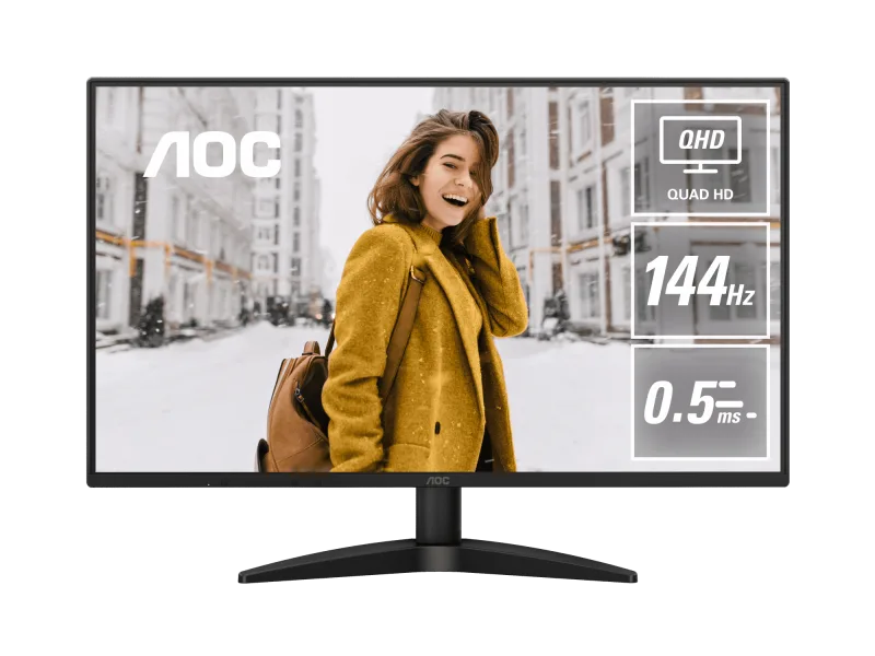 Monitor AOC 27″ Q27B36X, Diagonal (inch): 27, Diagonal (cm): 68, Aspect ratio: 16:9, Panel: IPS, Resolution: 2560×1440, Refresh Rate: 144Hz, Response time GtG: 4ms, Response time MPRT: 0.5ms, Brightness (max): 300 cd/m², Contrast (static) : 1500:1, Contrast (dynamic): 20M:1, Viewing angle: 178/178, Color Gamut Type: Adobe RGB, Color Gamut Coverage: 0.877, Colours: 16.7M, VESA Wallmount: 100×100, Tilt: -5/+21, D-SUB: 0, HDMI: x1, DisplayPort: x1, AUX: x1 3.5mm Audio OUT