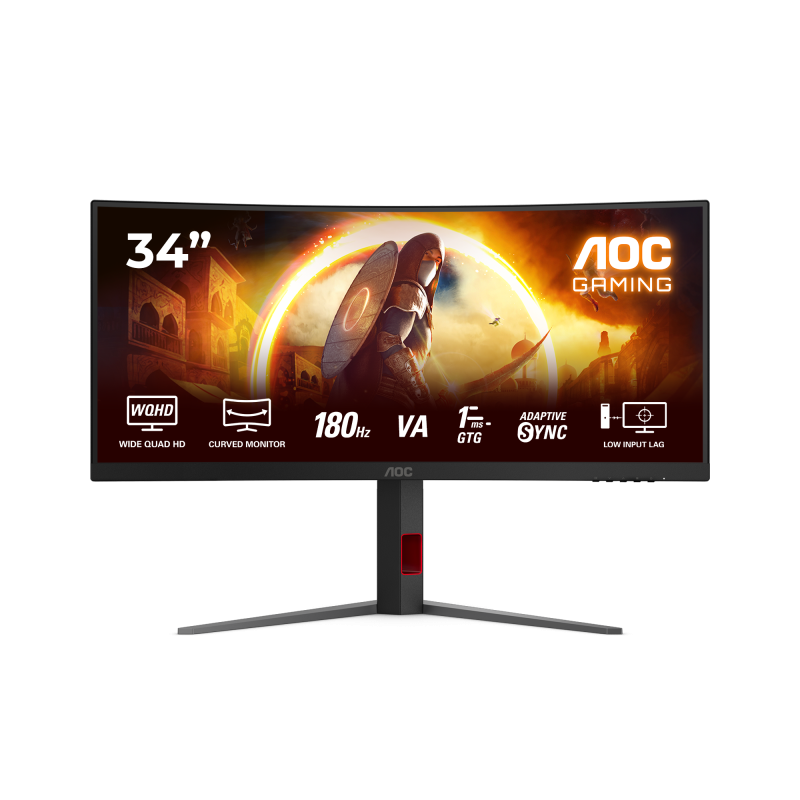 Monitor AOC 34″ CU34G4, Curvature: 1500R, Diagonal (inch): 34, Diagonal (cm): 86, Aspect ratio: 21:9, Panel: VA, Resolution: 3440×1440, Refresh Rate: 180Hz, Response time GtG: 1ms, Response time MPRT: 0.5ms, Brightness (max): 300 cd/m², Contrast (static) : 2500:1, Viewing angle: 178/178, Color Gamut Type: DCI-P3, Color Gamut Coverage: 92.3%, Colours: 16.7M, VESA Wallmount: 100×100, Tilt: -1.5/+21.5, HAS: 130mm, Swivel: -2/20, D-SUB: 0, HDMI: x2, DisplayPort: x1, AUX: x1 3.5mm Audio OUT