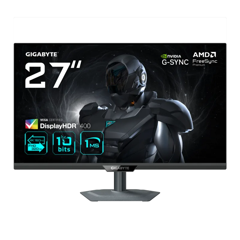Monitor Gaming Gigabyte G27U EK, Panel Size: 27″ SS IPS, Panel Backlight/Type: EDGE, Display Surface: Non-glare type, Color Saturation: 95% DCI-P3/ 122% sRGB, True Resolution: 3840 x 2160 (UHD), Brightness: 350 cd/m2 (TYP), Contrast Ratio(Max): 1000.1 TYP, Dynamic Contrast: Viewing Angle 178°(H)/178°(V), Response time: 1ms GTG, Refresh rate: 160Hz (UHD) / 320Hz (FHD)