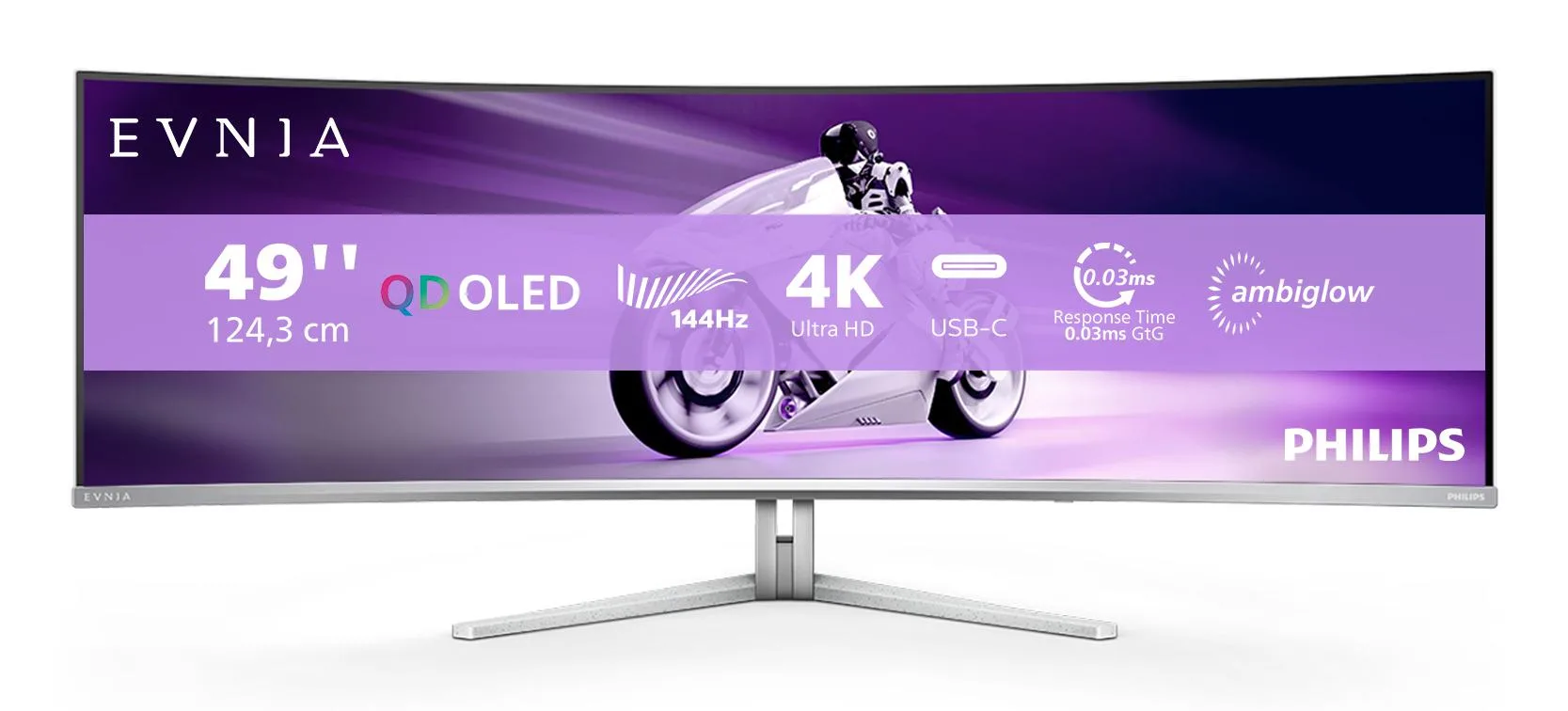 Monitor Philips 49 inch 49M2C8900L/00 – Panel: QD – OLED – Curvature: 1800R – Diagonal inch : 49 – Diagonal cm : 124.5