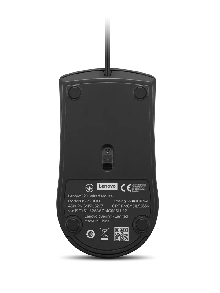 Specificație: Mouse cu fir Lenovo 120; 1600DPI; conectivitate: USB – A; senzor optic; numar de butoane: 3; greutate: 90g; lungimea