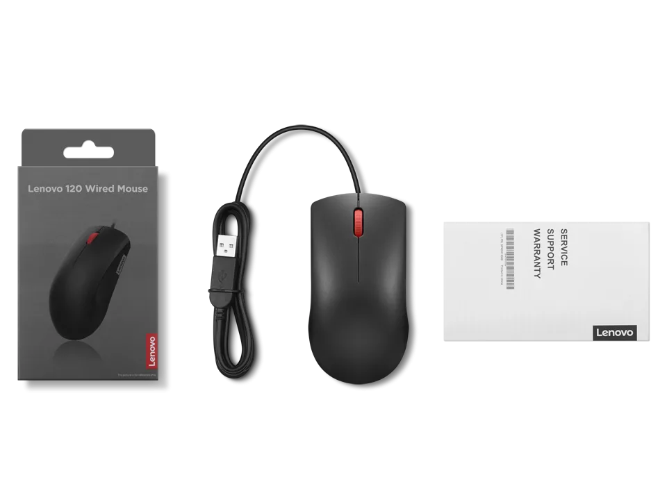 Mouse cu fir Lenovo 120; 1600DPI; conectivitate: USB – A; senzor optic; numar de butoane: 3; greutate: 90g; lungimea
