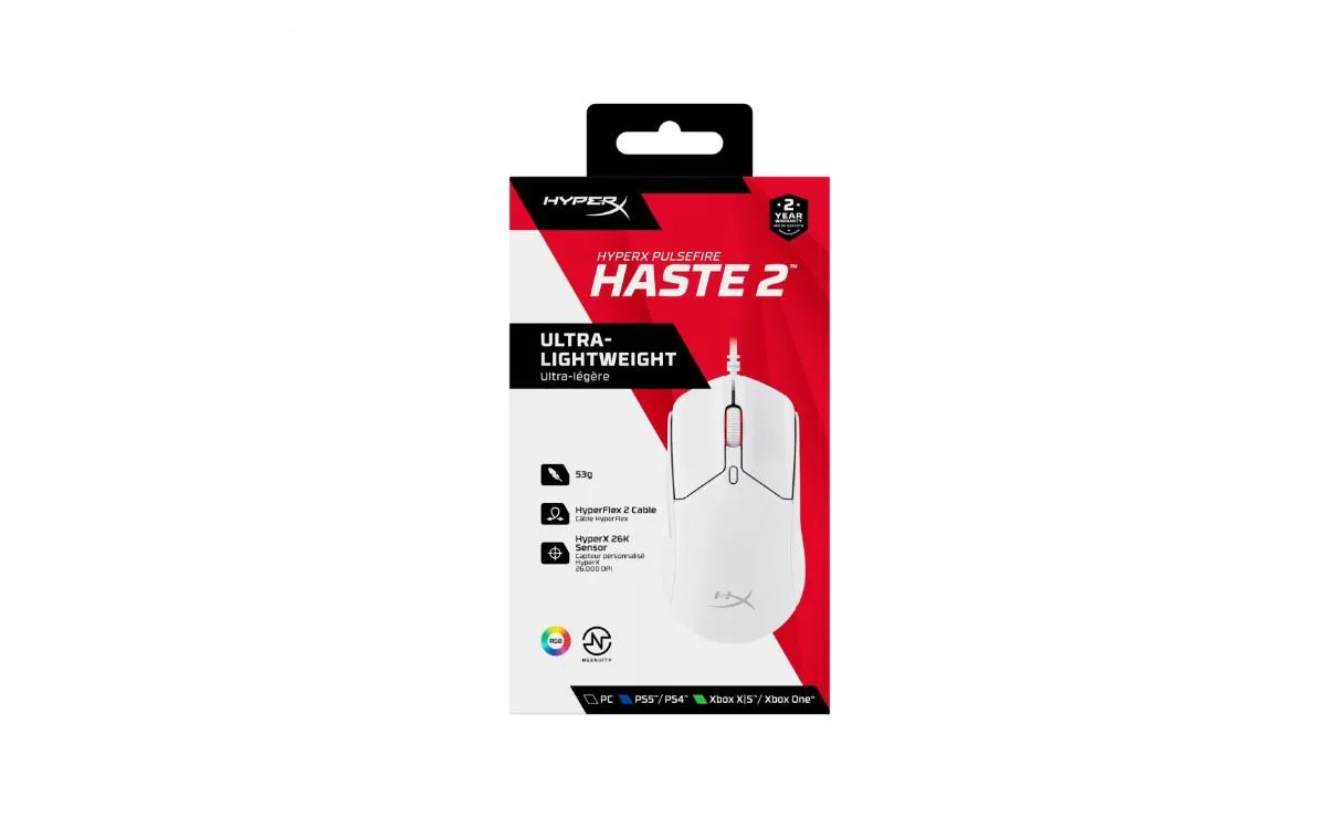 Mouse HP cu fir – White – HYPERX Pulsefire Haste – Pixart 3327 sensor – DPI pana la 26.000