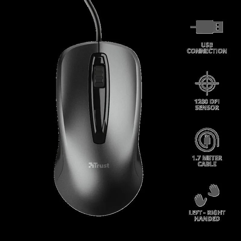 Mouse-ul cu fir Trust Carve USB, Negru este o alegere practica pentru utilizare zilnica la birou sau acasa. Conceput pentru laptop si PC, acest mouse USB ofera un echilibru bun intre specificatii tehnice si functionalitate, fiind potrivit pentru activitati uzuale precum navigare web, lucru in documente sau aplicatii office.