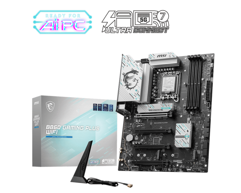 Placa de Baza MSI B860 GAMING PLUS WIFI LGA1851, 4x DDR5, 1x HDMI 1x DP 1x Type-C DP, 4x PCIE x16, 3x M.2, 4x SATA 6GB/s, ATX