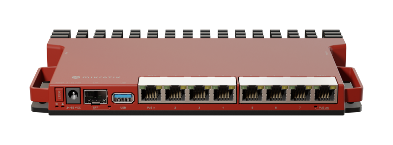 Router wireless Mikrotik L009UIGS-RM, porturi: 8x LAN1x SFP, porturi LAN/WLAN 8x 10/100/1000 Mbps, 1x 10/100/1000/2500 Mbps, procesor Dual- Core IPQ-5018 800 MHz, memorie 512 MB DDR3L, Negru – Rosu