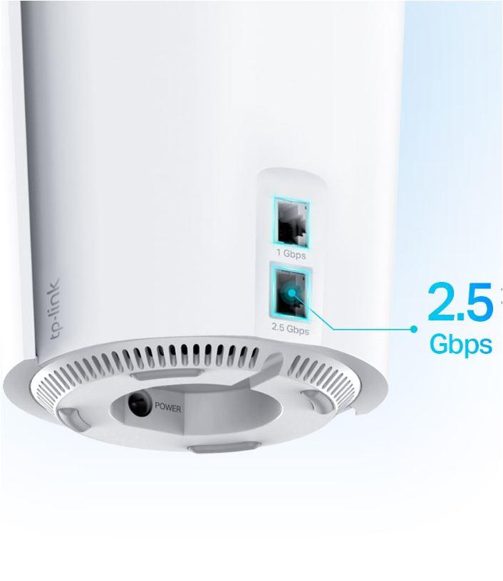 TP-Link AX6600 whole home mesh Wi-Fi 6 System, Deco X90(1-pack); Standarde Wireless: IEEE 802.11ax/ac/n/a 5 GHz, IEEE 802.11ax/n/b/g 2.4 GHz, 1.5 GHz Quad-Core CPU, 1× 2.5 Gbps Port, 1× Gigabit Port, 4×4 MU- MIMO, WiFi Speeds: 5 GHz: 4804 Mbps (802.11ax, HE160), 5 GHz: 1201 Mbps (802.11ax), 2.4 GHz: 574 Mbps (802.11ax).