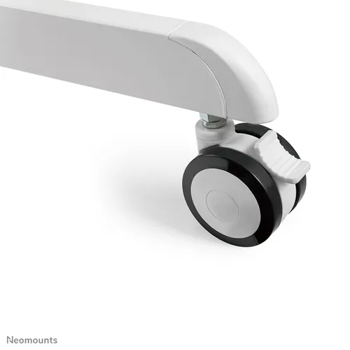 Stand mobil de podea Neomounts by Newstar, compatibil Samsung Flip 55″/65″; diagonale 37″-70″, VESA 200×200~600×400, max load 70kg, inclinatie 5°, rotatie 90° (landscape & portrait), inaltime fixa, polita AV, management cabluri, 2 stalpi, dimensiuni 920x702x1595mm, culoare alb, garantie 5 ani