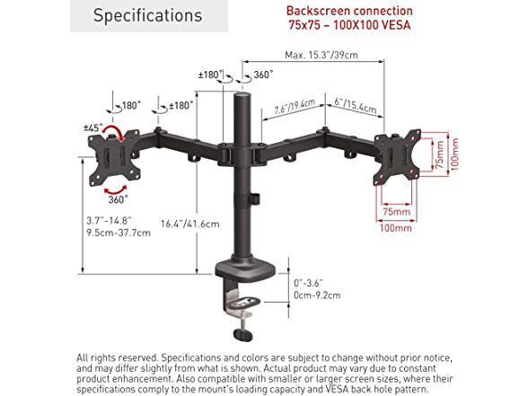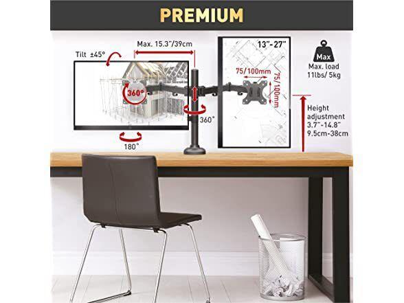 Suport monitor Barkan M142T full motion, pentru monitoare de 13″-27″, greutate maxima suportata per ecran 5 kg, VESA max. 100x100mm, negru