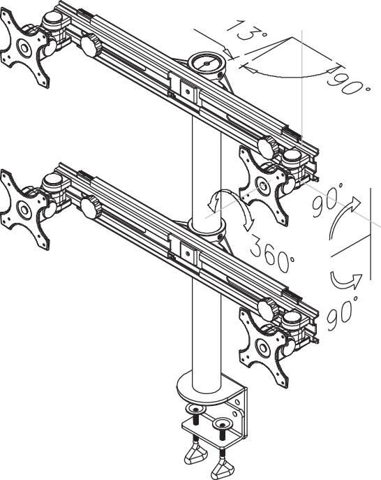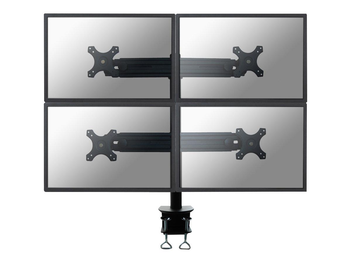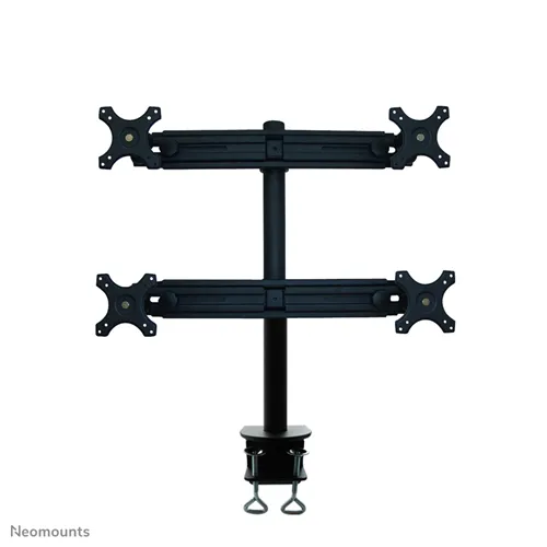 The Neomounts by Newstar desk mount, model FPMA-D700D4 is a tilt-, swivel and rotatable desk mount for 4 flat screens up to 30″. This mount is a great choice for space saving placement on desks using a desk clamp.