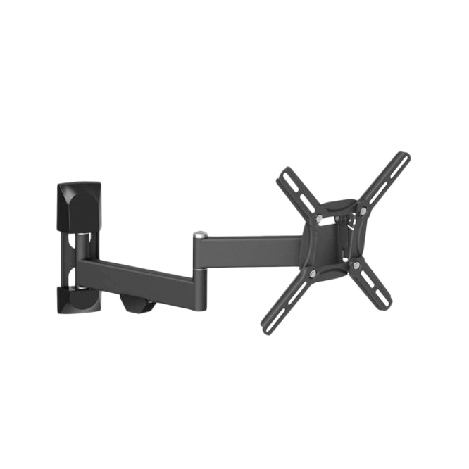 The mount has 3 pivots which: rotate near the wall 180°, fold 360°, swivel near the screen connection plate 180° in addition to a tool free tilt from 0° till 15°.