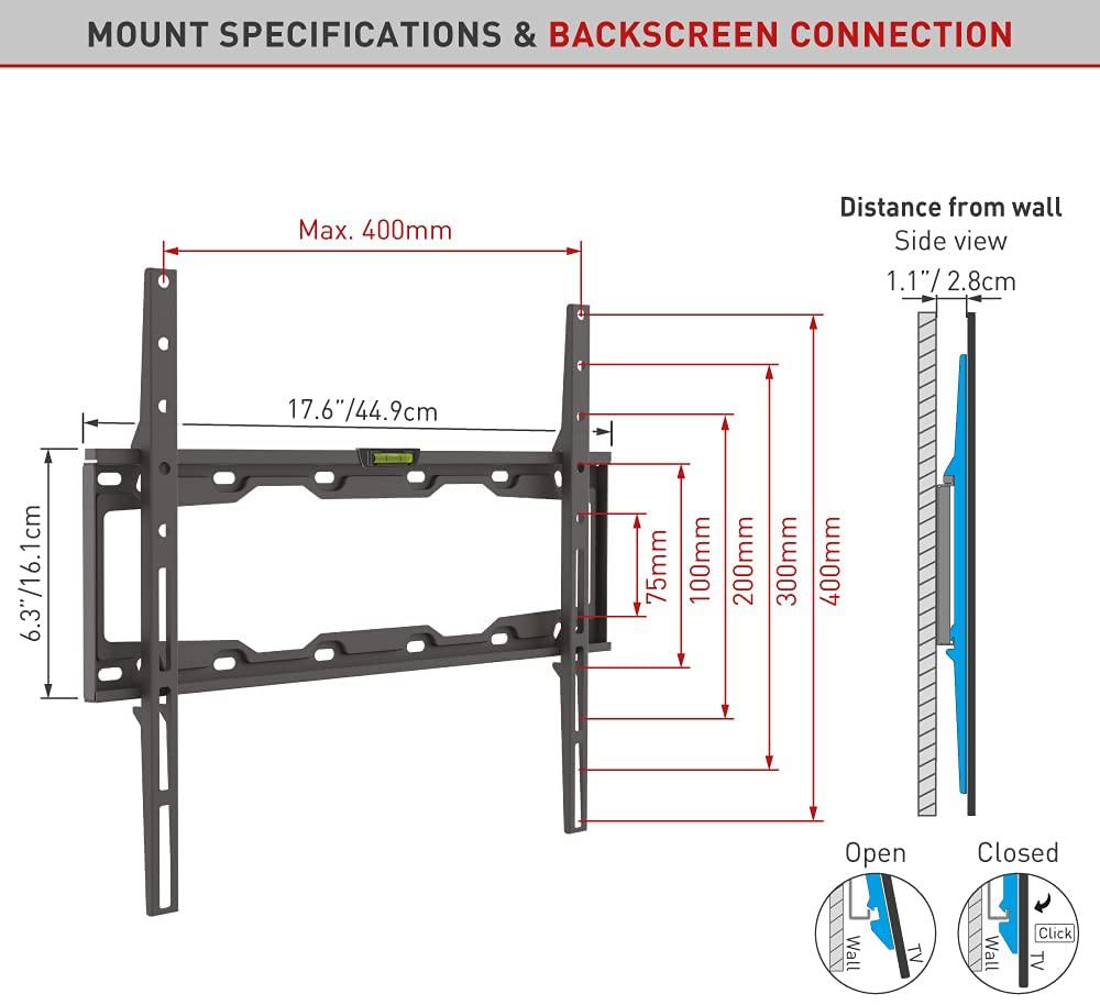 Specificație: Suport TV de perete, Barkan E302+.B, Fix, 19"- 65", VESA