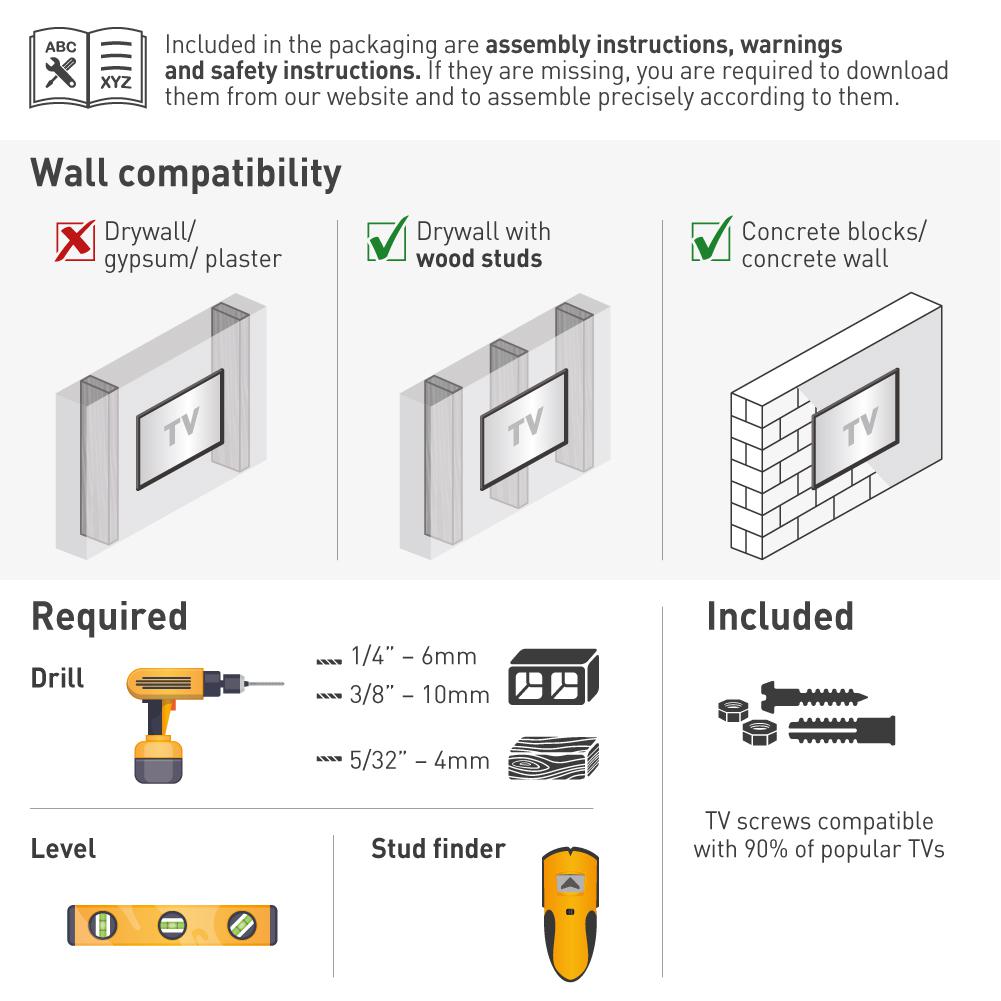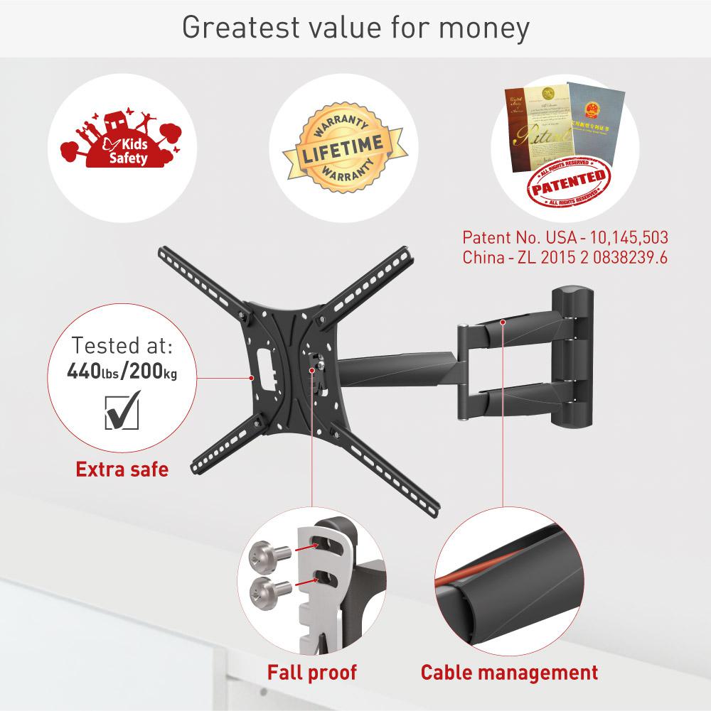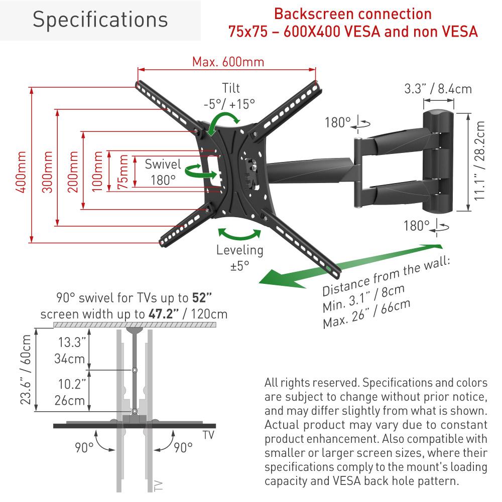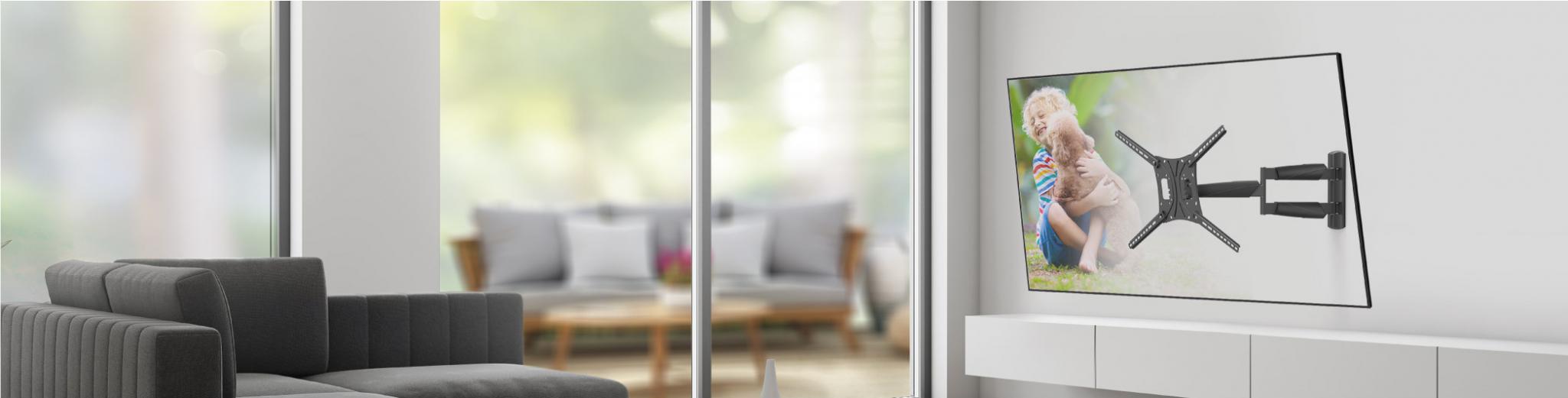 Specificație: Suport TV plat/curbat de perete cu 2 brate Barkan BM443LP,