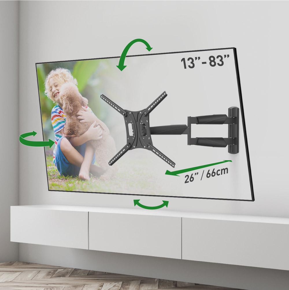 Suport TV plat/curbat de perete cu 2 brate Barkan BM443LP, 13″- 83″, Max 50kg, VESA 600×400, negru