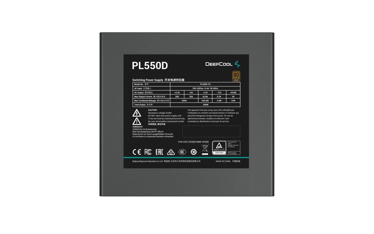 Sursa DEEPCOOL PL550D 550W 80 PLUS Bronze, Active PFC+DC to DC, Eficienta 85% sub incarcare tipica, Protectie OPP/OVP/SCP/OTP/OCP/UVP/SIP/NLO