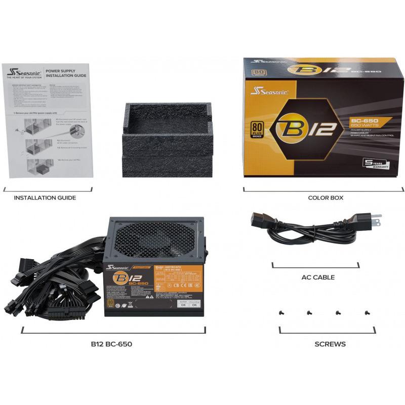 Sursa Seasonic B12 BC-650 80+ Bronze 650W, ATX, Active PFC, Eficienta 85%, Protectii OPP, OVP, OCP, SCP
